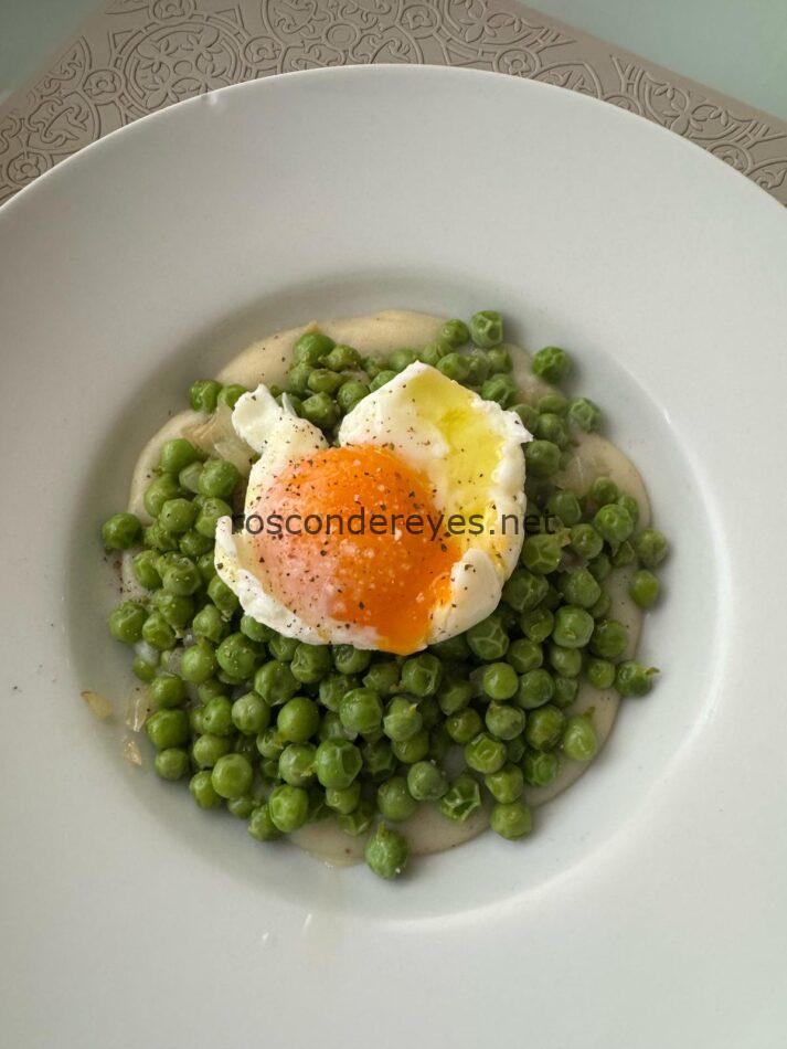 Cubrir el fondo del plato con una capa fina de la crema de patata, agregar los guisantes y por último colocar el huevo.