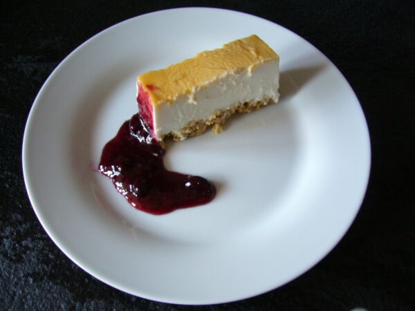 Como habréis comprobado hemos acompañado la tarta con un poco de salsa de arándanos y es que las tartas de queso combinan muy bien con las típicas salsas de arándanos, frutas del bosque o similares. En este caso servimos la salsa como acompañante en un lateral, la próxima vez igual probamos a sustituir el caramelo por una capita de salsa de arándanos, prometemos subir el resultado! De momento aquí tenéis fotos del proceso: